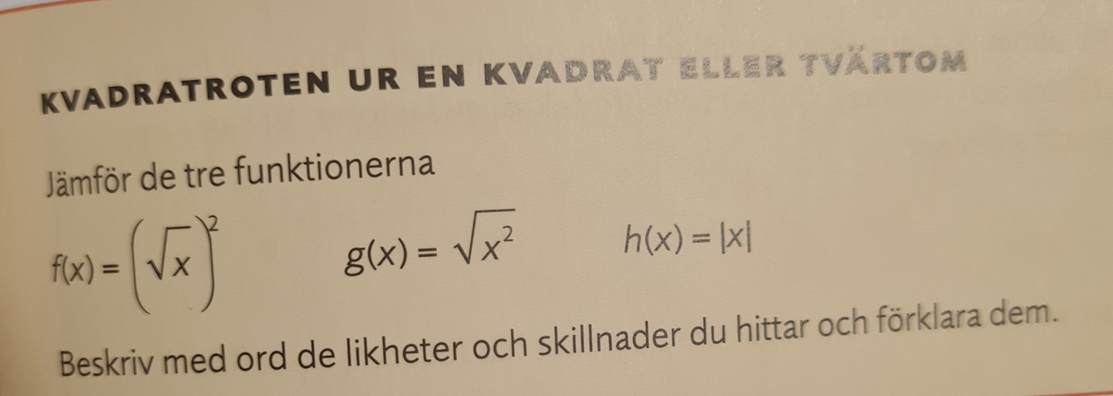 g(x)=h(x) är lika eftersom de har samma domain och rang meh f(x) Df: x>=0 . det står på facit att alla är lika