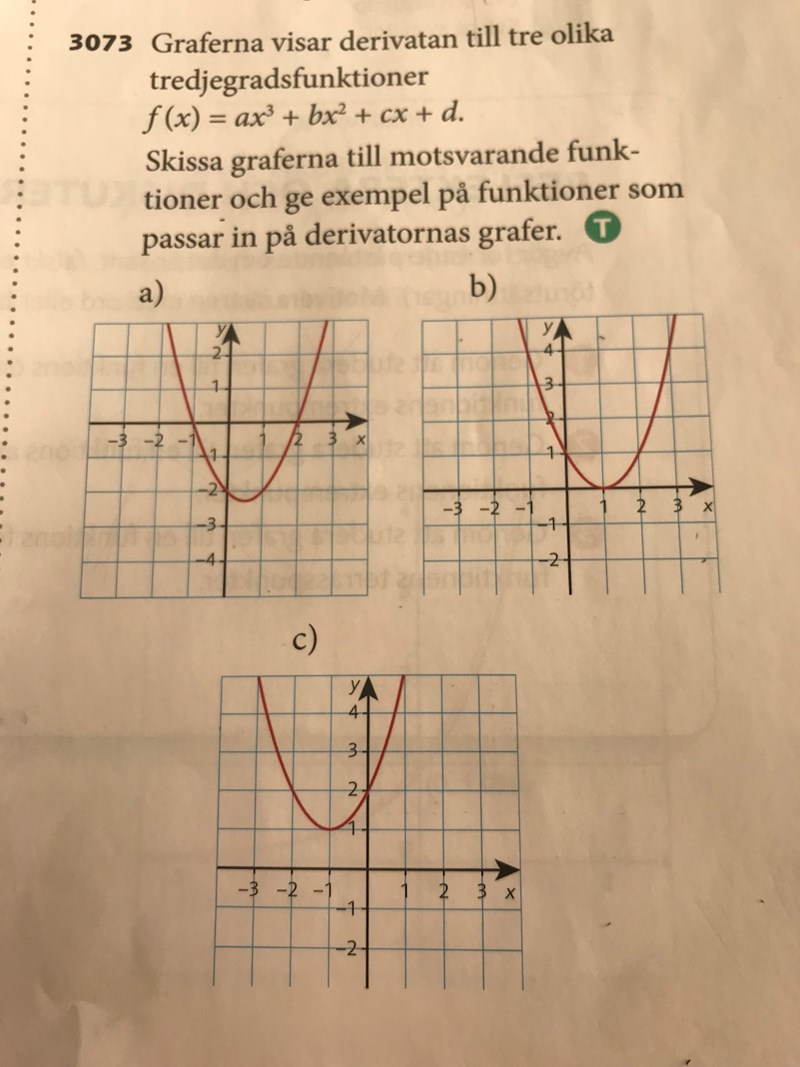 De vill att du utifrån graferna ska först och främst bestämma derivatorna och utifrån dem bestämma möjliga tredjegradskurvor. Primitiva funktioner hör till ma3 så du måste lära dig om dem någon gång, och dessutom är det inte så svårt.