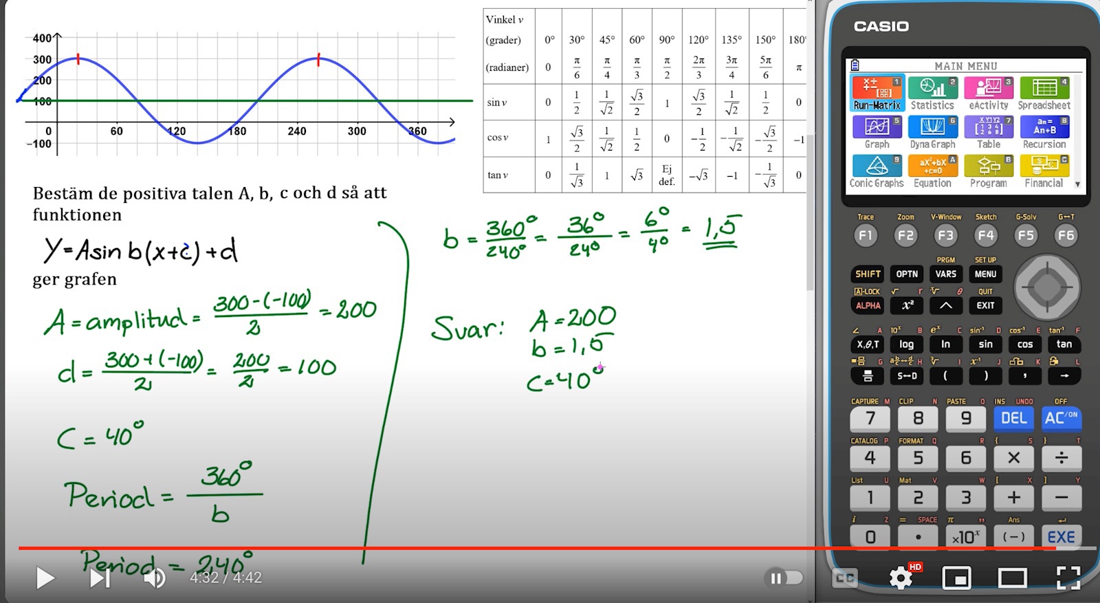 Allt är konstanter utom x (och y). När konstanterna fixerats alstrar x en kurva som löper längs tallinjen. (x är en del av vinkeln.)