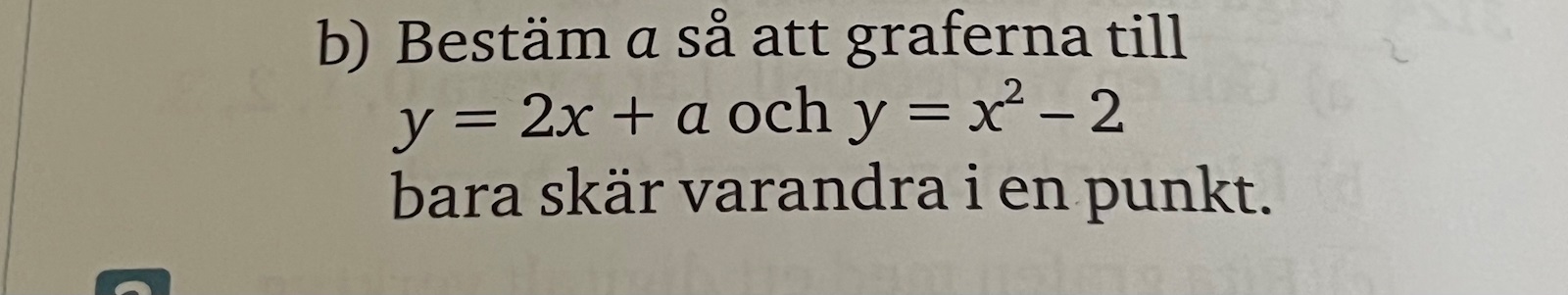 Lägg en linjal med lutning 2 och se var den endast skär y=x^2-2 en gång.