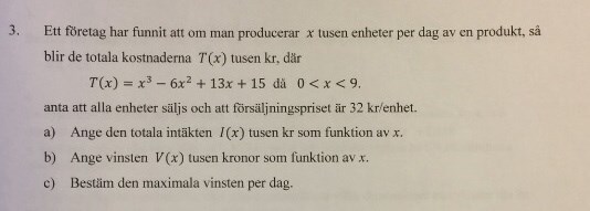 Vinsten är ju intäkterna minus de totala kostnaderna: