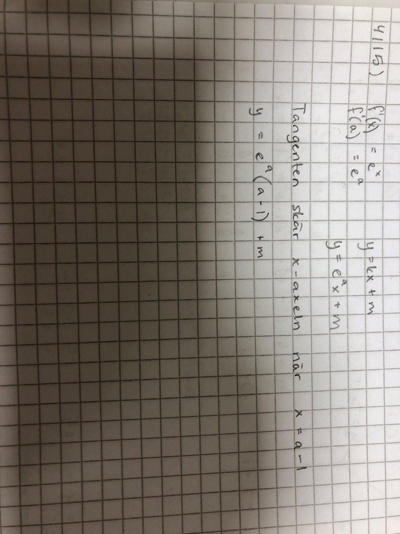 Du har deriverat rätt och du har tagit fram korrekt ekvation för tangenten, nämligen y = eax + m.