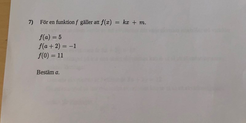 Använd punkterna (a, 5) och (a+2, -1) för att beräkna k-värdet.