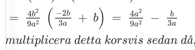 EDIT - det ska vara 4b39a2-8b327a2\frac{4b^3}{9a^2}-\frac{8b^3}{27a^2}.