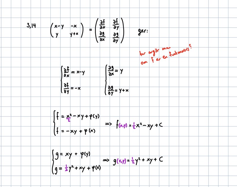 Räknade ut f och g men hur avgör jag om det är en funktionalmatris?