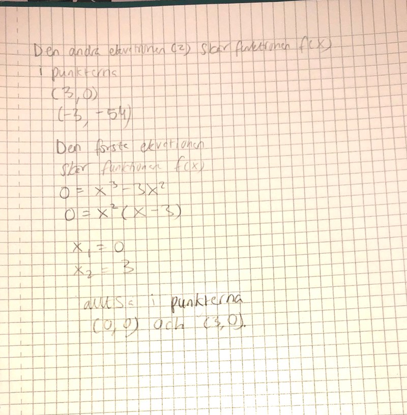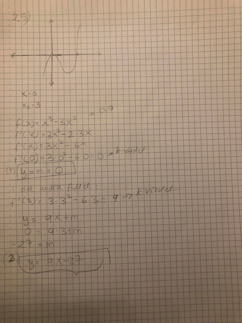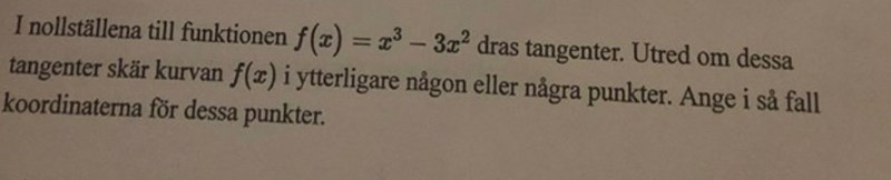 Jag har hittat 2 tangenter som kommer skära funktionen f(x). Det sista jag ska göra för att besvara frågan är