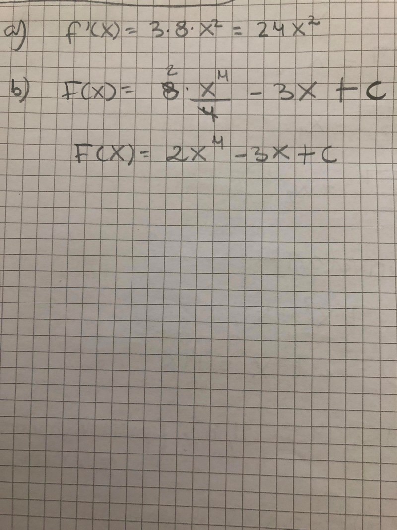 b) bestäm samtliga primitiva funktioner F(x) till f(x)