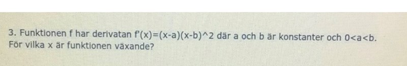 Svaret ska vara att funktionen f är växande då xax\geq a.