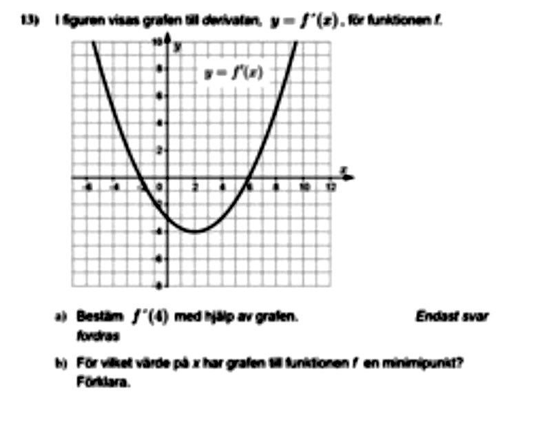 Har fastnat på b frågan. Vet inte hur jag ska tänka elr börja.. Det här är ju en derivata graf. Så jag vet inte hur jag ska gå till väga.
