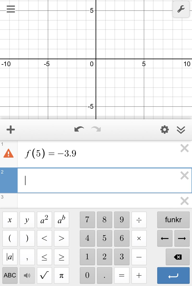 1. f(5)=-3,9f(5)=-3,9 innebär att funktionens graf går genom punkten (5;-3,9)(5; -3,9).