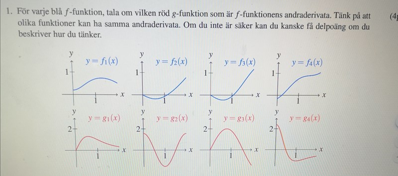 Hejsan jag skulle behöva lite hjälp med att förstå hur man kan se olika funktioners andra derivata när man tittar på grafer.