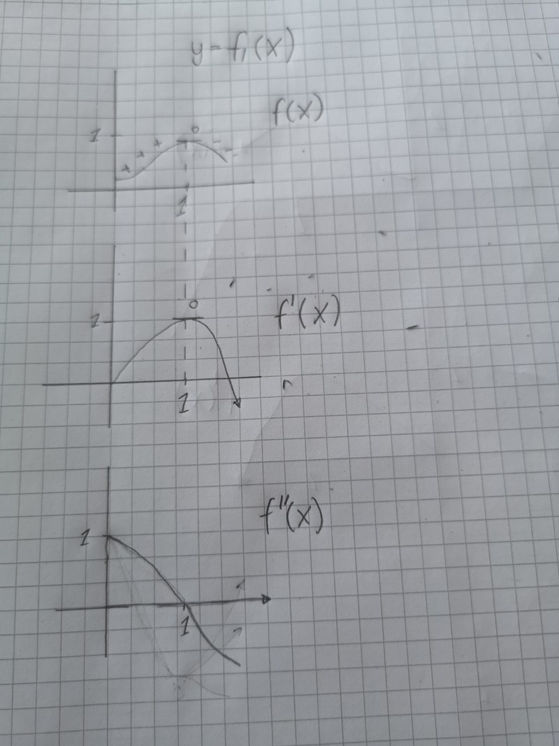 Jag kan rita första och andra derivatan till grafen av tex f=x^2 och f=x^3 då man behöver bara derivera funktionen och då kan man enkelt rita grafen Men som nu när man inte har någon funktion och bara en bild så är det riktigt svårt att veta fösta eller andra derivatan till grafen.