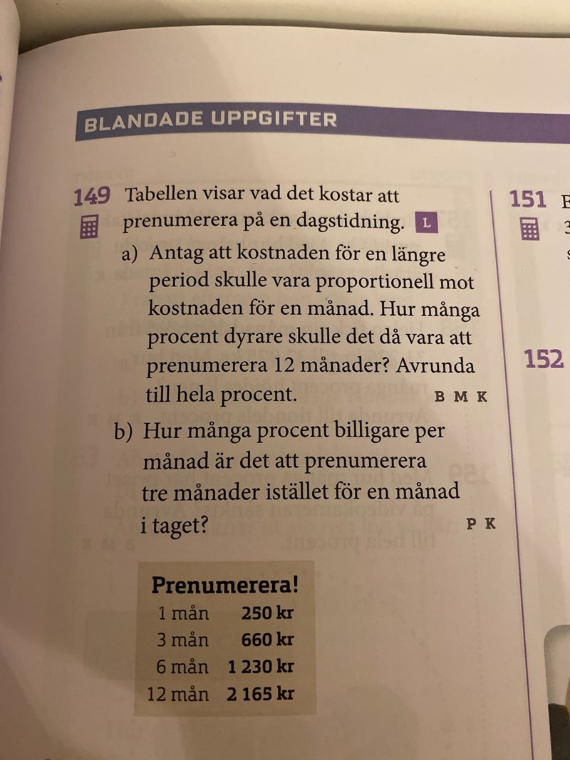 Hur räknar man ut 149 a)?