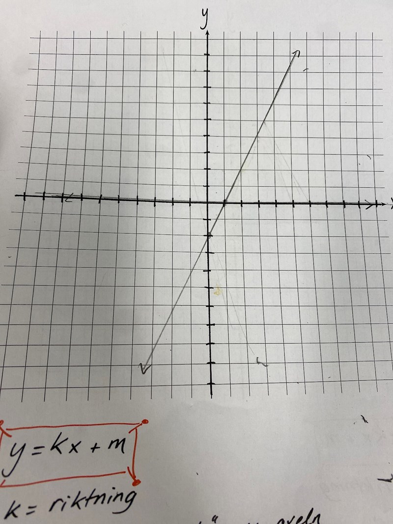 Jag tror han menar 3:e linjen och kikar man på din graf så ser man att du är på väg åt rätt håll! Rita linjen som ger en likbent triangel och ta fram k för den.