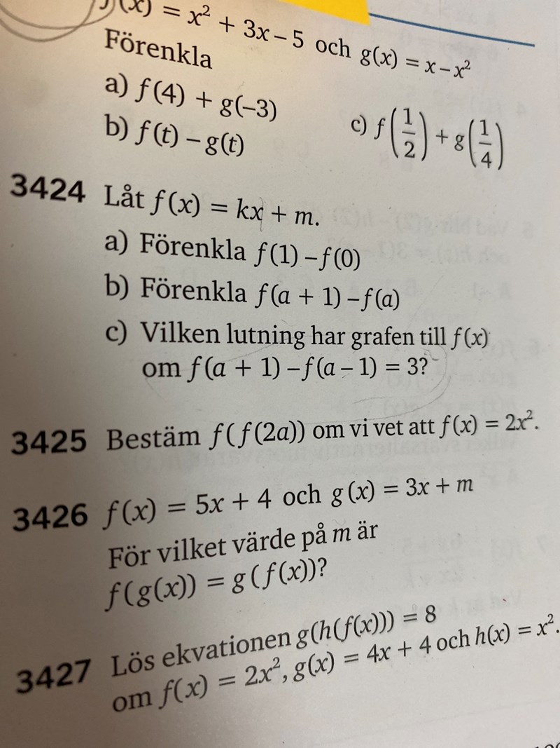 Funktioner - bestäm x-värden, förenkla och hitta lutningen