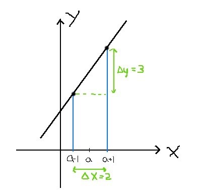 Eftersom y = f(a+1) - f(a-1) = 3 och ∆x = a + 1 - (a - 1) = a + 1 - a + 1 = 2.