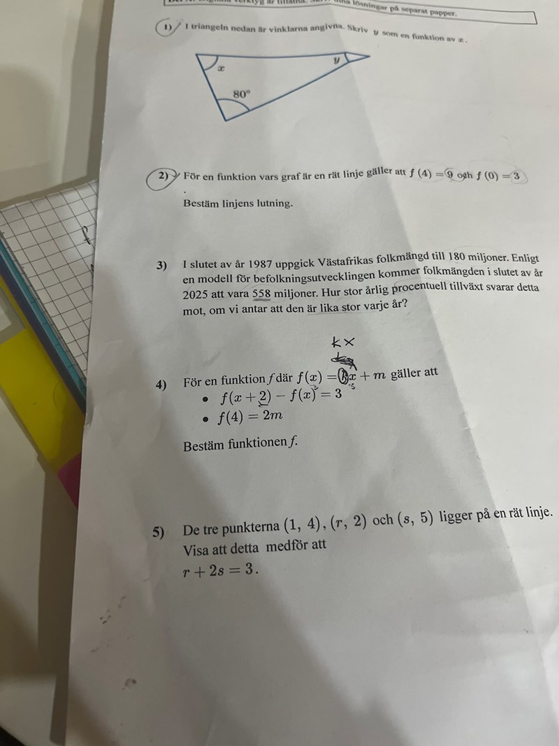 5 är här linjens m-värde när linjens ekvation skrivs som y = kx + m.