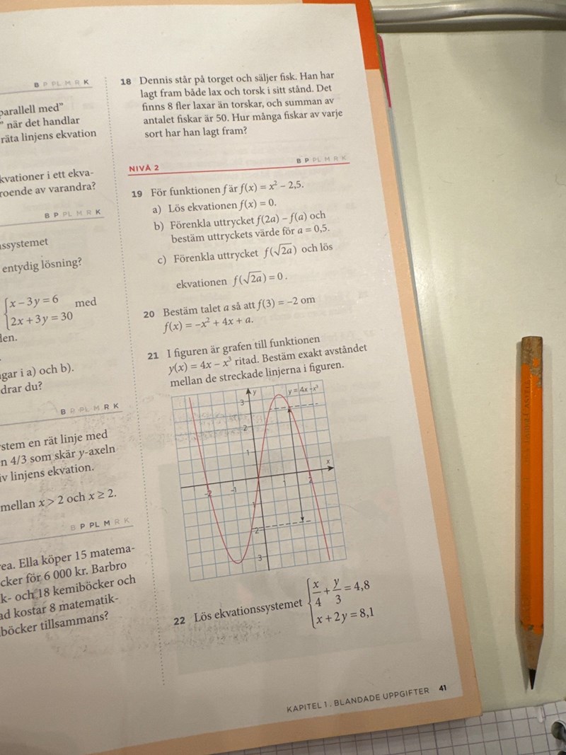 Ta med hjälp av funktionsuttrycket reda på y-koordinaerna för punkt A och punkt B.