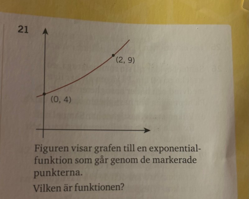 En exponentialfunktion skrivs y=C*ax. Det man vill göra i dessa uppgifter är att använda punkterna på smarta sätt för att få fram värdet på a och C.