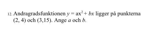 Kom fram till a = 3 och b = -4, stämmer uträckningen?