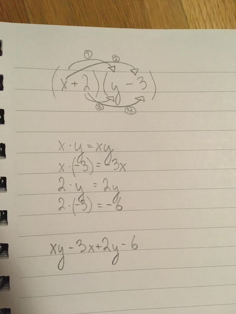 Hur skriver man uttrycket ( x+2)(y-3) utan parentes.