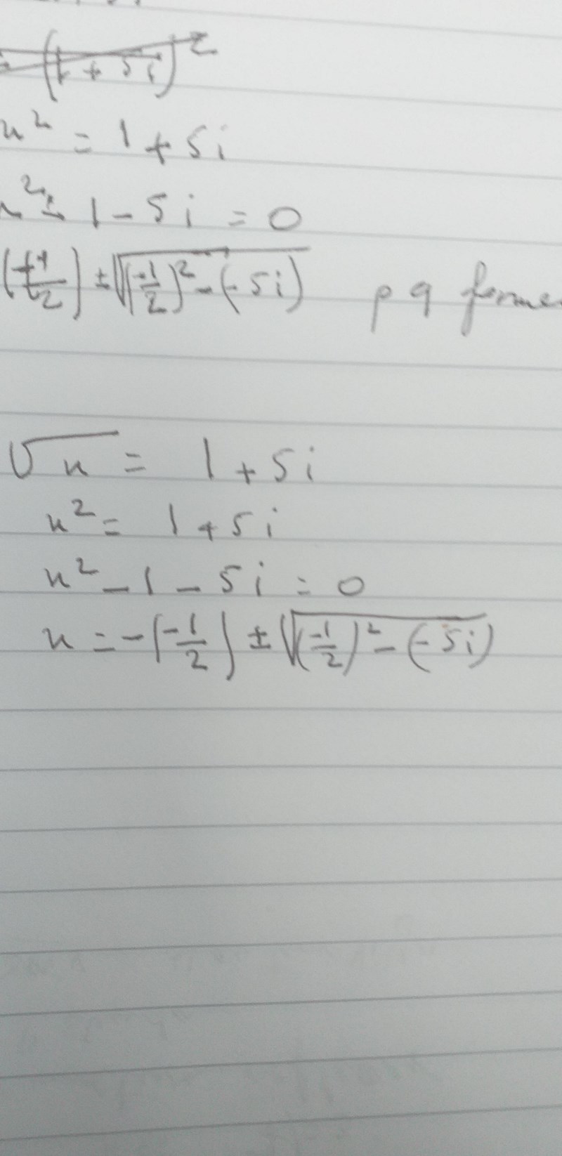 Bestäm en ekvation på formen x^2+px+q=0x2+px+q=0 som har en rot x=1+5ix=1+5i
