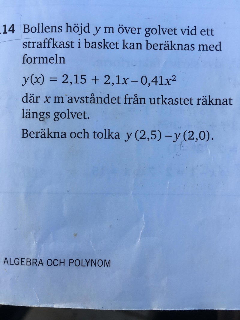 y(2.5)-y(2) är skillnad i höjd när bollen befinner sig 2.5m från utkastet jämförelse med när bollen befinner sig 2m ifrån utkastet.