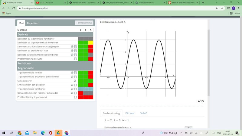 Från -pi/2 till pi/2 så är det 3/2 perioder.