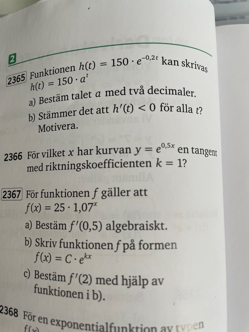 Hej, jag har följadne uppgift, 2365, som jag sliter med och jag förstår inte alls hur jag ska göra. JAg har både försökt sätta dem lika med varandra före jag deriverar och även efter jag deriverat men det blir bara knas.