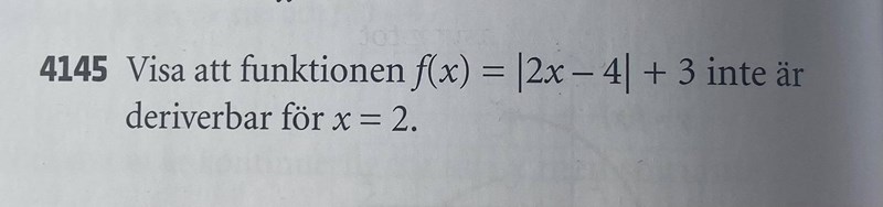 Om en funktion är deriverbar kommer man fram till samma gränsvärde när man kommer dit från högre värden och från mindre värden. I det här fallet kommer man fram till olika gränsvärden när man kommer från höger eller från vänster, så...