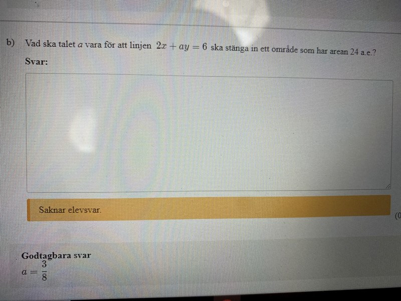 Hej! Skulle någon kunna förklara varför facit har skrivit 0 = 6/a - 2/a • x