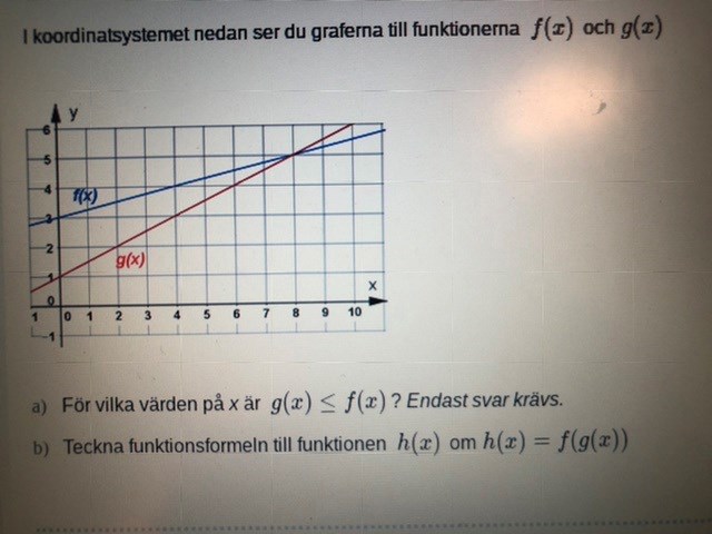 då måste g(x) grafen ha samma k värde och m värde. Alltså f(x)=0,5x+1... Det är fel. Hur ska man tänka?
