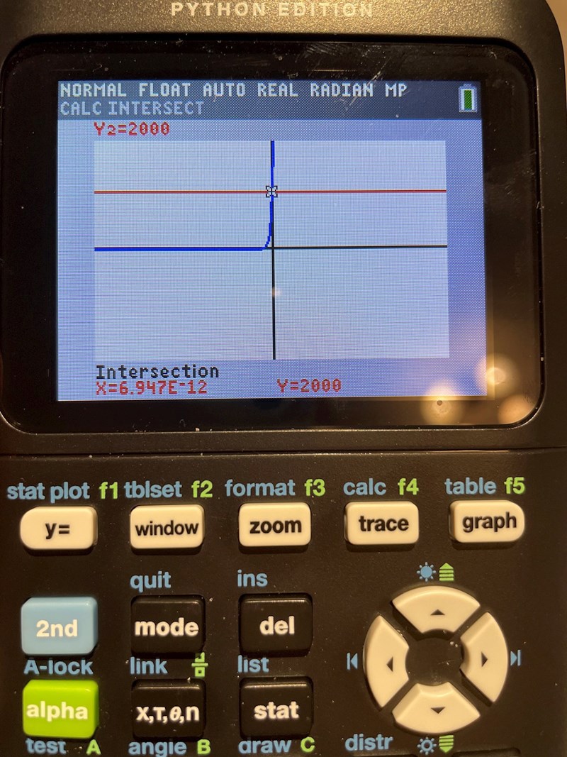Hej, jag försöker lösa ekvationen 1,02^x x 2000 = 200000 grafiskt. Jag har fyllt i y1 = 1,02^x x 2000 och y2 = 200000. Sedan trycker jag intersect för att hitta skärningspunkten, men då kommer det upp fel x-värde. Jag tyckte det var orimligt, så jag testade med y2 = 2000 för att se om x blir 0, men det blir ett helt annat svar. Vet någon vad jag har gjort för fel?
