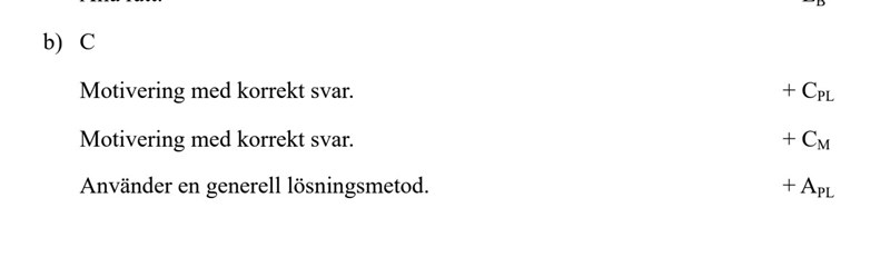 Okej, nu har jag ett nytt svar. Det krävs en generell lösningsmetod för A-poäng, skulle ni säga att detta svar ger full pott: