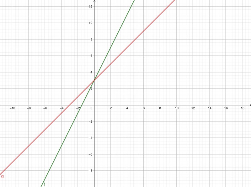Den gröna linjen motsvarar den röda i ditt tal när x<=0. Den röda för x>0 har funktionen y=x+3.