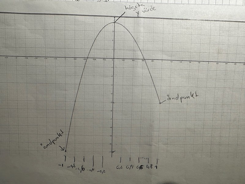 Utifrån ändpunkterna -1 och 1 så får ska x-värdena vara -1 ≤ x ≤ 1