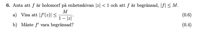 Har inte några speciella tankar om hur jag skulle kunna lösa den, men står i facit att man ska använda cauchys integralformel, men får inte riktigt rätt på det :(