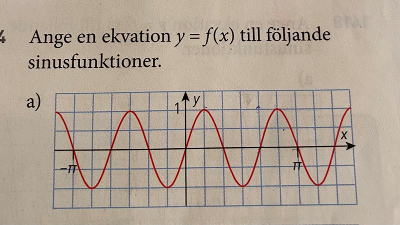 Jag vet att jag ska använda mig av y = a • sinkx, och jag har räknat ut att A=1.