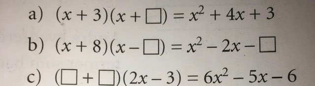 först gjorde jag om rutorna: (x+8)(x-a) = xx - 2x - b