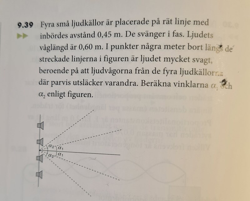 Men här är det bättre att inte betrakta dessa fyra högtalare som ett gitter. Vad är då fasvillkoret för att det ska vara tyst från dessa fyra på den första nodlinjen?