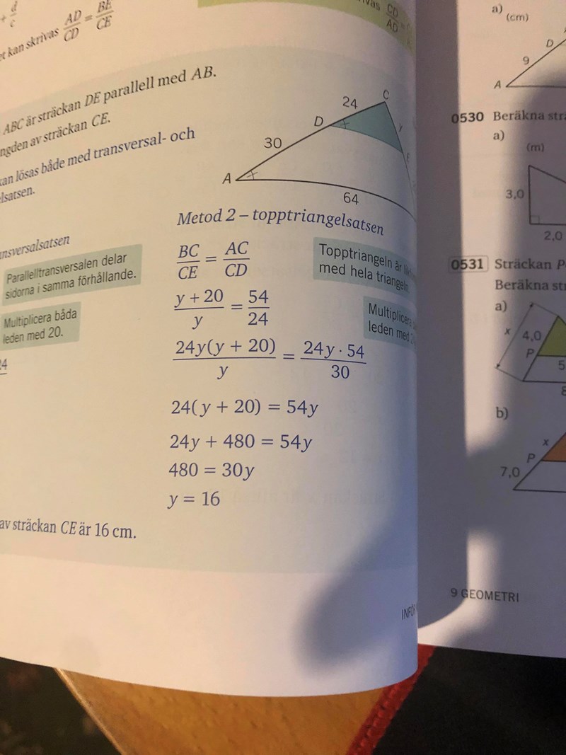 Utöver de satser som Laguna nämnde så är även areasatsen, topptriangelsatsen och likformighet några av de formler/samband som går att använda.
