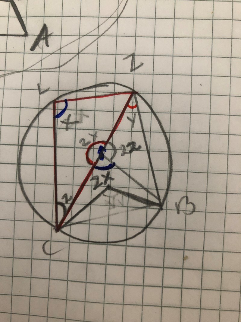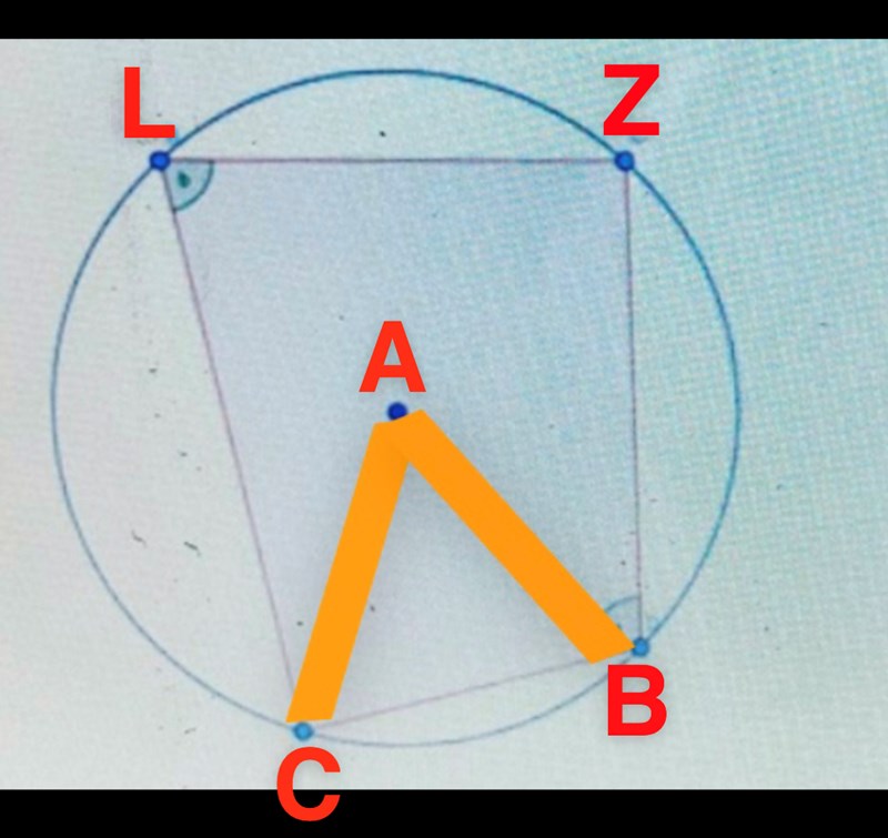 Sträckan AC =AB därför att båda är ”radien” till cirkeln. Det måste isåfall betyda att AL=AZ därför att de också är ”radien till cirkeln”. Vi får likbenta trianglar. Hur kommer jag vidare?