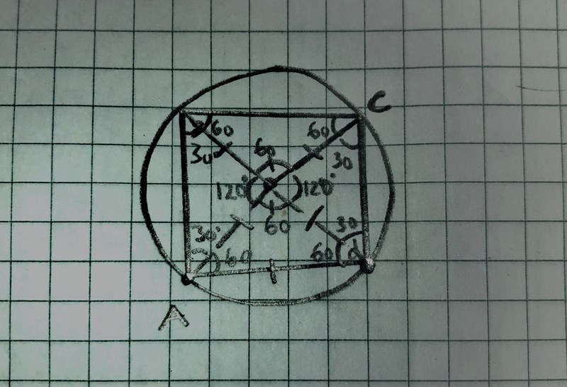 Du har bara bevisat det för ett specialfall, men du ska bevisa det för en godtycklig fyrhörning.