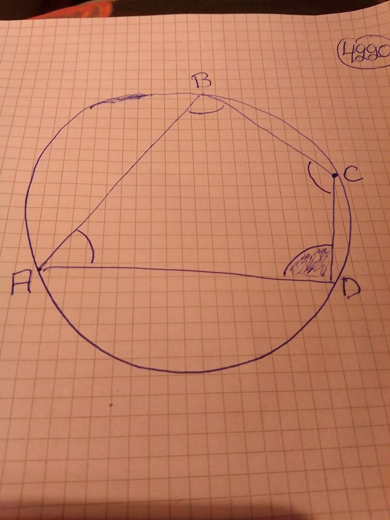 Vad vet du om vinklarna i en fyrhörning vars hörn ligger på randen? Det finns ett samband mellan två motsatta vinklar.