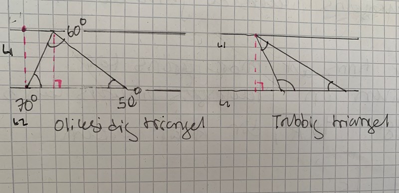 Är det bara för trubbiga trianglar (triangel med en vinkel över 90 grader) som höjden kan hamna utanför triangel? Eller gäller samma princip även för "oliksida trianglar" (alltså en triangel där alla sidorna är olika men ingen av vinklarna är över 90)?