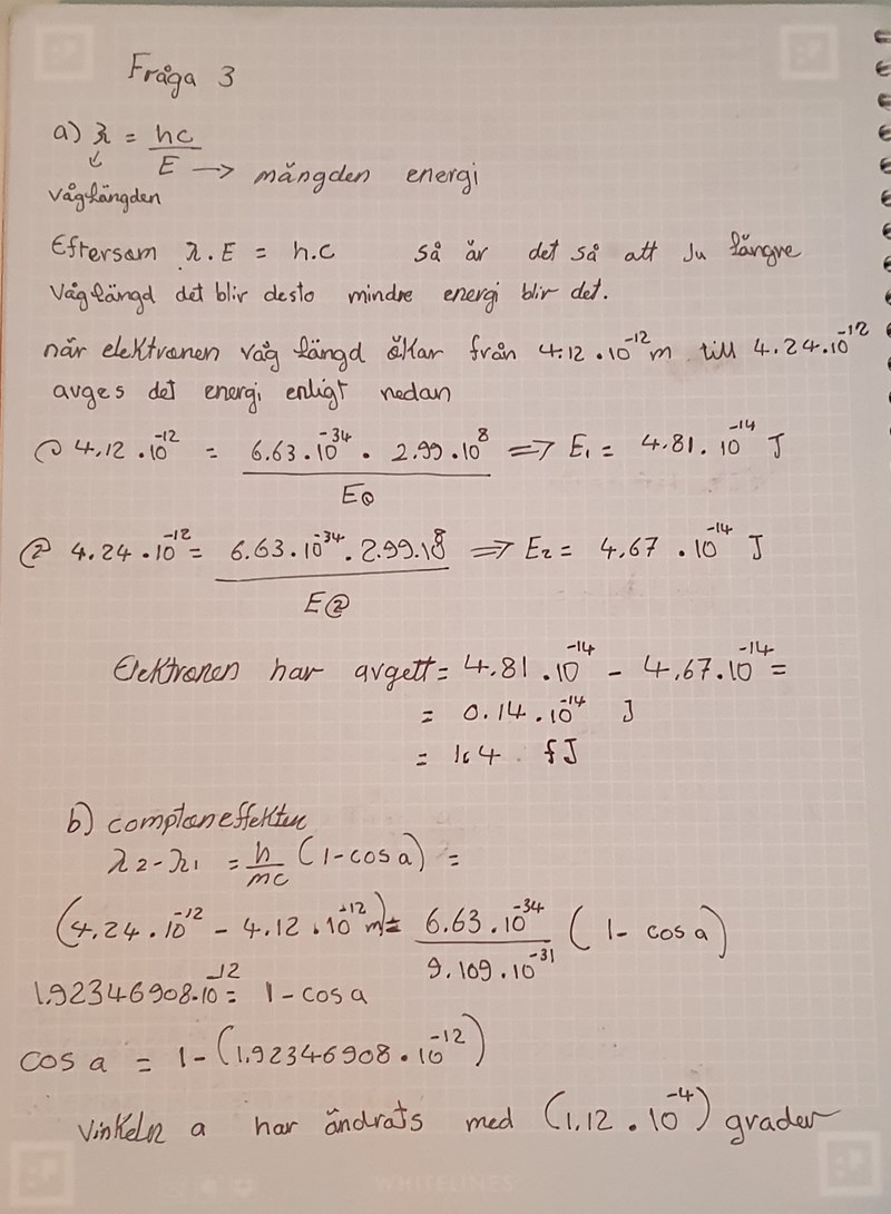 a. Hur mycket energi har elektronen avgett eller upptagit?
