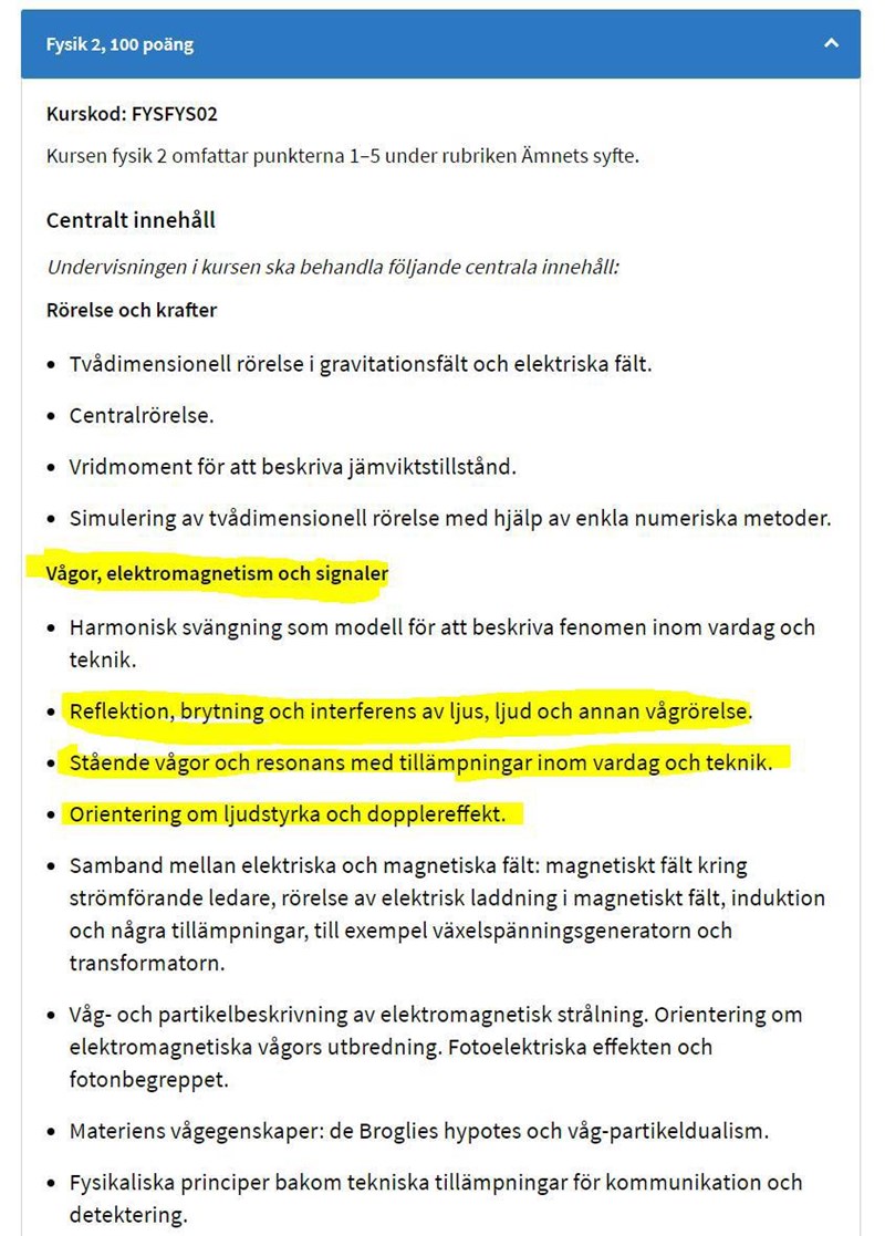 Innefattar Fysik 1, 2 eller någon (bara grundläggande) mekanikkurs någon typ av ljudkunskap, frekvens, ohm eller liknande? (Jaa, hur man nu ska säga det. Ni förstår nog.)
