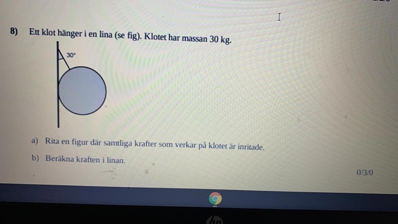 Det finns 3 krafter som verkar på kulan. Tyngkraften är en kraft och från repet finns också en kraft samt från vägg. Kan du rita dem?
