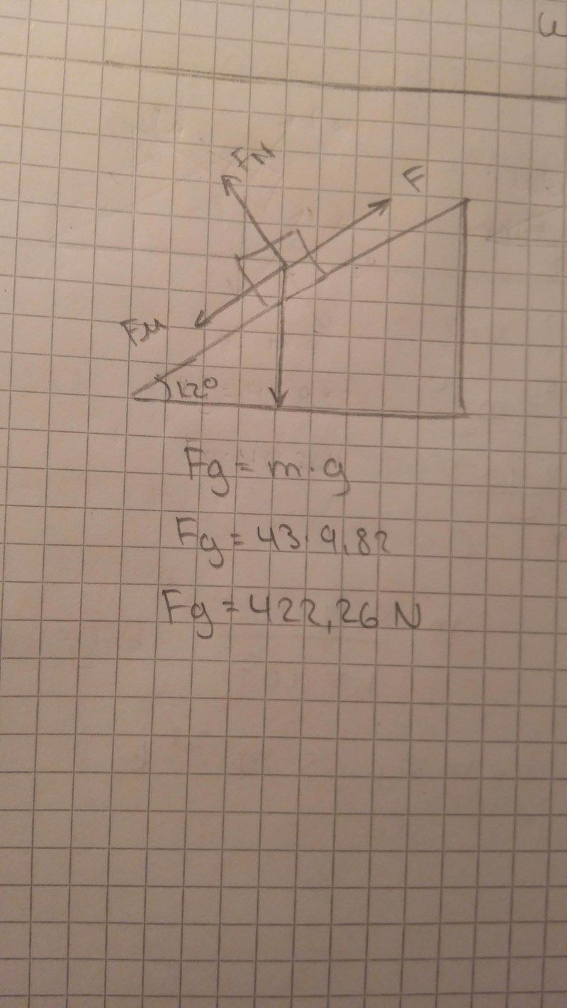 b) denna komposant blir -mgcos(12˚), vi ser positiv riktning som den riktning i vilken normalkraften FN verkar.