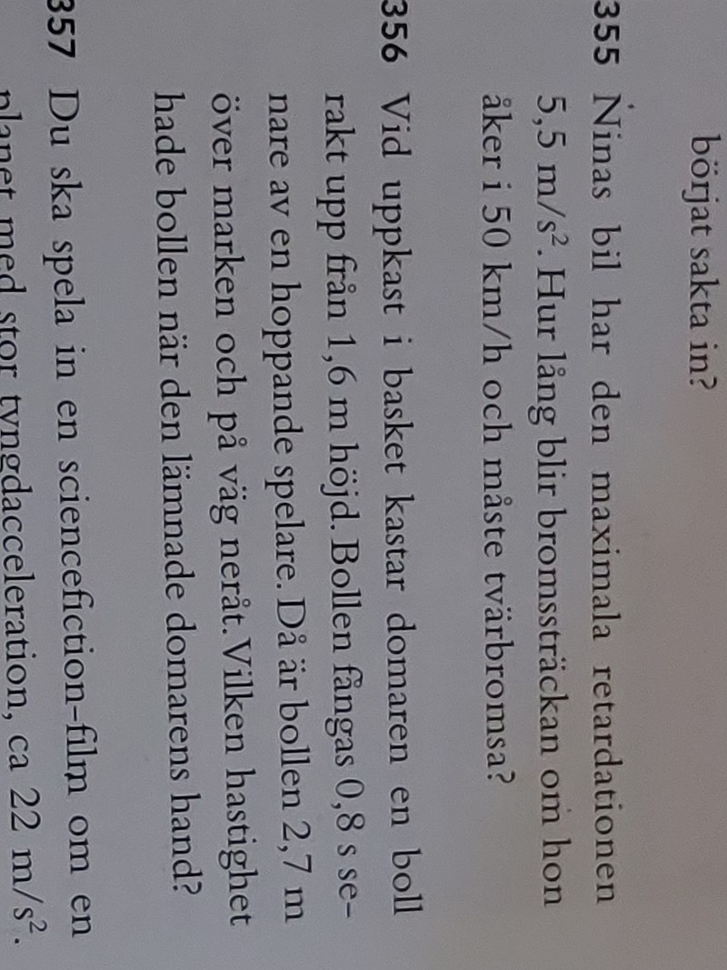 Fysik 1 kast, hastighet, acceleration och sträckor